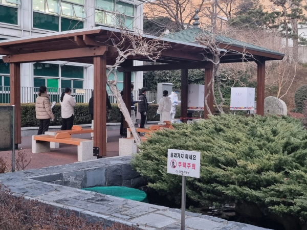 À̳¯ È®ÁøÀÚ °Ý¸®ÀÚµéÀº ÅõÇ¥¸¦ À§ÇØ ½ÅºÐ È®ÀÎÀ» ¸¶Ä£ µÚ ±¸Ã» 1Ãþ¿¡¼ ´ë±âÇß´Ù. ÀÌÈÄ 10¿© ¸í¾¿ È£¸íµÇ´Â ¼ø¼¿¡ µû¶ó ÅõÇ¥¿ëÁö¸¦ ¹ÞÀº µÚ ¾ß¿Ü¿¡ ¸¶·ÃµÈ ÀӽñâÇ¥¼Ò·Î À̵¿ÇØ ÅõÇ¥Çß´Ù. ¹®Á¦´Â Àӽà ±âÇ¥¼ÒÀÇ °æ¿ì ÅõÇ¥ÇÔÀÌ ¾ø¾î ºÀÅõ¿¡ ³ÖÀº ÅõÇ¥ ¿ëÁö¸¦ ¼±°Å»ç¹«¿ø¿¡°Ô ³Ñ°Ü¾ß Çß´Ù. ¼±°Å»ç¹«¿øÀº Âü°üÀΰú ÇÔ²² 2Ãþ¿¡ ÀÚ¸®ÇÑ ÀÏ¹Ý ÅõÇ¥ÀÚ ÅõÇ¥¼Ò·Î À̵¿ÇØ ÅõÇ¥ÇÔ¿¡ ÅõÇ¥¿ëÁö ³Ö±â¸¦ ¹Ýº¹Çß´Ù.
