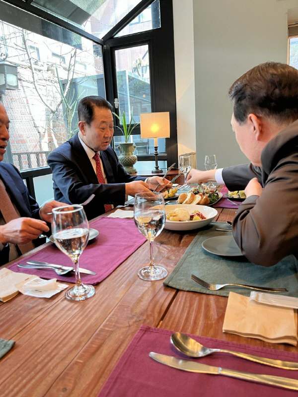 | À±¼®¿ ´ëÅë·É ´ç¼±ÀÎÀÌ 17ÀÏ ¼¿ï Á¾·Î±¸ ÅëÀǵ¿ Áý¹«½Ç Àα٠ÀÌÅ»¸®¾È ½Ä´ç¿¡¼ ¹ÚÁÖ¼± ´ëÅë·É ÃëÀÓ½Ä ÁغñÀ§¿øÀå¿¡°Ô À½½ÄÀ» °Ç³×°í ÀÖ´Ù. À± ´ç¼±ÀÎÀº À̳¯ ±èÇÑ±æ ´ëÅë·ÉÁ÷ÀμöÀ§¿øÈ¸ ±¹¹ÎÅëÇÕÀ§¿øÀå, ±èº´ÁØ ÀμöÀ§ Áö¿ª±ÕÇüƯº°À§¿øÀå, ¹ÚÁÖ¼± ´ëÅë·É ÃëÀÓ½Ä ÁغñÀ§¿øÀå°ú ¿ÀÂùÀ» ÇÔ²² Çß´Ù. ±¹¹ÎÀÇÈû Á¦°ø