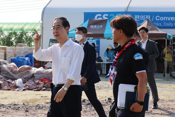 | ÇÑ´ö¼ö ±¹¹«ÃѸ®°¡ 4ÀÏ ¿ÀÈÄ ÀüºÏ ºÎ¾È±º¿¡¼ ¿¸®°í ÀÖ´Â 2023 »õ¸¸±Ý ¼¼°è½ºÄ«¿ìÆ®Àë¹ö¸® ´ëȸÀåÀ» ã¾Æ Æø¿° ´ëÀÀ »óȲ ¹× ÆíÀǽü³ µîÀ» Á¡°ËÇϰí ÀÖ´Ù. 2023.8.4 ¿¬ÇÕ´º½º