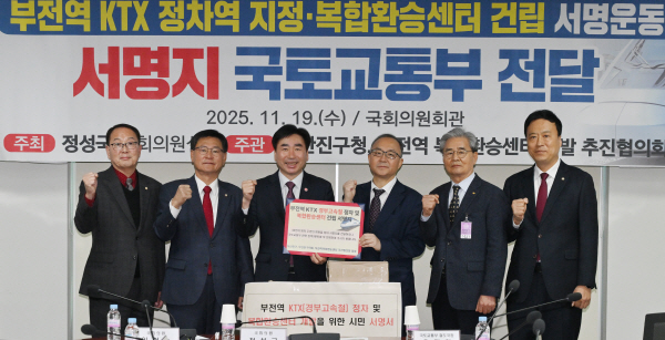 | ºÎ»ê Áö¿ª Á¤¼º±¹ ÀÌÇå½Â ±¹È¸ÀÇ¿ø°ú ±è¿µ¿í ºÎ»êÁø±¸Ã»Àå, ¹ÚÇöö ºÎ»êÁø±¸ÀÇȸ ÀÇÀå µîÀÌ ºÎÀü¿ª KTX Á¤Â÷¿ª ÁöÁ¤¡¤º¹ÇÕȯ½Â¼¾ÅÍ °Ç¸³ ¼¸íÁö¸¦ 19ÀÏ ±¹È¸¿¡¼ ±¹Åä±³ÅëºÎ¿¡ Àü´ÞÇÏ´Â Àü´Þ½ÄÀÌ ¿·Á, Á¤ ÀÇ¿øÀÌ ÃëÁö¸¦ ¼³¸íÇϰí ÀÖ´Ù. ±èÁ¤·Ï ±âÀÚ