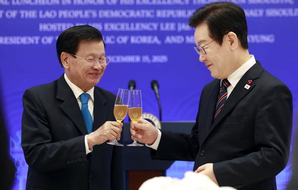 | ÀÌÀç¸í ´ëÅë·ÉÀÌ 15ÀÏ ÇÑ-¶ó¿À½º °ø½Ä¿ÀÂù¿¡¼ Åë·é ½Ã¼ú¸´ ¶ó¿À½º ±¹°¡ÁÖ¼®°ú °Ç¹èÇϰí ÀÖ´Ù. ¿¬ÇÕ´º½º |