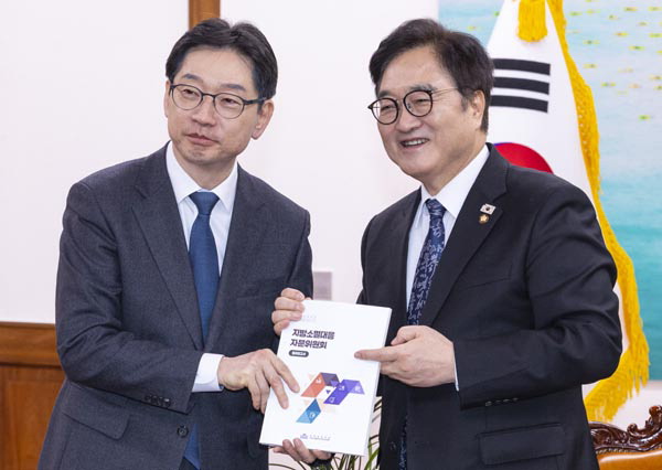 | ¿ì¿ø½Ä(¿À¸¥ÂÊ) ±¹È¸ÀÇÀåÀÌ 4ÀÏ ±¹È¸¿¡¼ ±è°æ¼ö Áö¹æ½Ã´ëÀ§¿øÈ¸ À§¿øÀåÀ» ¸¸³ª ±¹È¸¿¡¼ ¸¸µç Áö¹æ¼Ò¸ê´ëÀÀ º¸°í¼¸¦ Àü´ÞÇϰí ÀÖ´Ù. ¿¬ÇÕ´º½º |