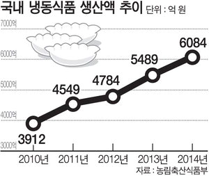 14ÀÏ ³ó¸²Ãà»ê½ÄǰºÎ¿Í Çѱ¹³ó¼ö»ê½ÄǰÀ¯Åë°ø»ç(aT)°¡ ³»³õÀº ½ÃÀå ÇöȲ ÀÚ·á¿¡ µû¸£¸é Áö³ÇØ ±¹³» ³Ãµ¿½Äǰ ½ÃÀå(À¯Å롤ÆÇ¸Å) ±Ô¸ð´Â 1Á¶5821¾ï ¿øÀ¸·Î Áý°èµÆ´Ù. ÀÌ´Â 2012³â(1Á¶4261¾ï ¿ø)¿¡ ºñÇØ 10.9%°¡ Áõ°¡ÇÑ ¼öÄ¡´Ù. 2012³âÀ» ±âÁØÀ¸·Î ÇÒ ¶§ ¿¬Æò±Õ ¼ºÀå·üÀº 5.3%¿¡ À̸¥´Ù. Áö³ÇØ ¼Ò¸Å½ÃÀå ±Ô¸ð´Â 7120¾ï ¿øÀ¸·Î, 2012³â(6418¾ï ¿ø)º¸´Ù 10%°¡·® ´Ã¾î³µ´Ù.