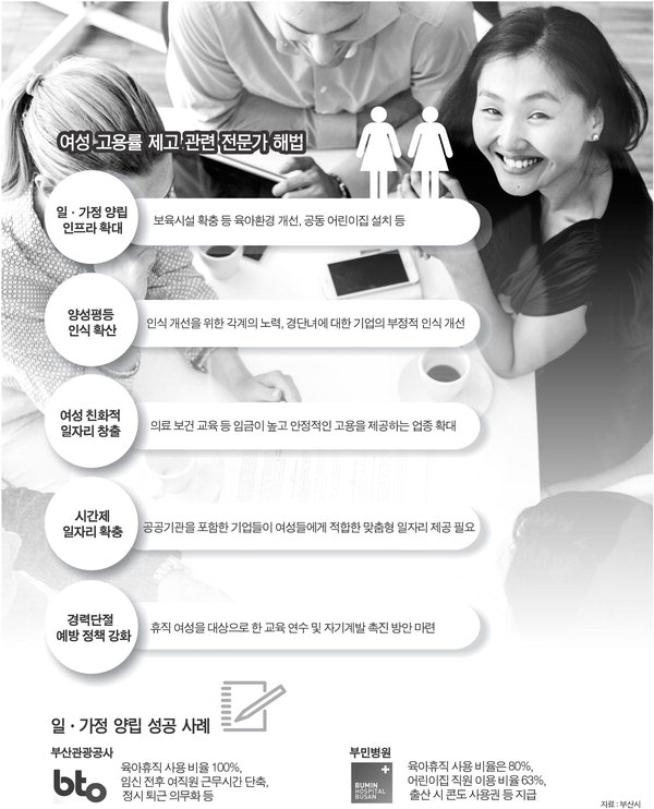 ¿ì¼± ºÎ»ê¹ßÀü¿¬±¸¿ø ¼¿Á¼ø ¿¬±¸À§¿øÀº 20¡¤30´ë ¿©¼ºÀÌ °áÈ¥ÇÑ ÀÌÈÄ¿¡µµ Á÷Àå°ú °¡Á¤¿¡¼ ÀÚ½ÅÀÇ ¾÷¹«¿Í °¡»ç¸¦ º´ÇàÇÒ ¼ö ÀÖ´Â ÀÎÇÁ¶ó°¡ È®´ëµÅ¾ß ÇÑ´Ù°í ¹àÇû´Ù. ±×´Â "±âÁ¸¿¡ Á÷ÀåÀ» ´Ù´Ï´ø ¿©¼ºµéÀÌ °áÈ¥À̳ª À°¾Æ ¹®Á¦·Î ÀÏÀ» ±×¸¸ µÎ´Â °ÍÀº Áö¿ª°æÁ¦ Ȱ¼ºÈ Â÷¿ø¿¡¼ Å« ¼Õ½ÇÀÌ ¾Æ´Ò ¼ö ¾ø´Ù"¸ç "Àڳฦ ¾È½ÉÇÏ°í ¸Ã±æ ¼ö ÀÖ´Â ÇÁ·Î±×·¥ÀÌ µÞ¹Þħ µÅ¾ß ÇÑ´Ù. ÀÏ¡¤°¡Á¤ÀÌ ¾ç¸³µÇÁö ¾Ê°í¼´Â ¿©¼º °í¿ë·ü Á¦°í´Â ±Ùº»ÀûÀ¸·Î Èûµé °Í"À̶ó°í ÁöÀûÇß´Ù.