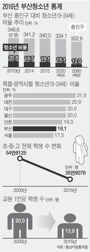 µ¿³²Áö¹æÅë°èûÀÌ 24ÀÏ ¹ßÇ¥ÇÑ '2016³â ºÎ»ê û¼Ò³â Åë°è'¿¡ µû¸£¸é Áö³ÇØ ºÎ»êÁö¿ª û¼Ò³â(9~24¼¼) Àα¸´Â 61¸¸6000¸íÀ¸·Î 10³â Àü 83¸¸9000¸í¿¡¼ 22¸¸3000¸í(26.6%)À̳ª ÁÙ¾ú´Ù.