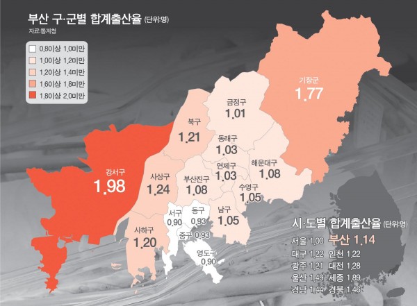 Åë°èûÀº 24ÀÏ ¹ßÇ¥ÇÑ '2015 Àü±¹ ½Ã±º±¸º° ÇÕ°èÃâ»êÀ²'À» ÅëÇØ ºÎ»ê °¼±¸ÀÇ ÇÕ°èÃâ»êÀ²ÀÌ 1.98¸íÀ¸·Î Áö¿ª¿¡¼ °¡Àå ³ôÀº ¼öÄ¡¸¦ ±â·ÏÇß´Ù°í ¹àÇû´Ù. ºÎ»ê¿¡¼ µÎ ¹øÂ°·Î ³ôÀº ÇÕ°èÃâ»êÀ²À» ±â·ÏÇÑ Áö¿ªÀº ±âÀ屺À¸·Î 1.77¸íÀ̾ú´Ù.