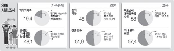 15ÀÏ Åë°èûÀÌ ¹ßÇ¥ÇÑ '2016³â »çȸÁ¶»ç °á°ú'¸¦ º¸¸é ±¹¹Î 51.9%´Â °áÈ¥À» 'ÇØ¾ß ÇÑ´Ù'°í »ý°¢ÇÏ´Â °ÍÀ¸·Î Á¶»çµÆ´Ù. 2010³â °°Àº Á¶»ç ¶§(64.7%)º¸´Ù ¸¹ÀÌ °¨¼ÒÇß´Ù. ³²ÀÚ(56.3%)°¡ ¿©ÀÚ(47.5%)º¸´Ù °áÈ¥ÀÇ Çʿ伺À» Å©°Ô ÀνÄÇß´Ù.