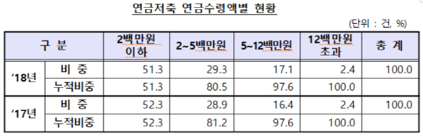 ±ÝÀ¶°¨µ¶¿øÀÌ 9ÀÏ ¹ßÇ¥ÇÑ ¡®2018³â ¿¬±ÝÀúÃà ÇöȲ ºÐ¼® °á°ú¡¯¸¦ º¸¸é, Áö³ÇØ ¸» ¿¬±ÝÀúÃà ÇØÁö°è¾àÀÌ 31¸¸2000°ÇÀ¸·Î ½Å±Ô °è¾à(30¸¸7000°Ç)À» ³Ñ¾î¼¹´Ù. ÇØÁö°è¾àÀº Áö³Çغ¸´Ù ¼ÒÆø(-4.2%) ÁÙ¾úÁö¸¸ ½Å±Ô°è¾à À¯ÀÔÀÌ ´õ Å« Æø(-15.3%)À¸·Î °¨¼ÒÇ߱⠶§¹®ÀÌ´Ù.