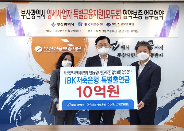 IBKÀúÃàÀºÇà°ú ½Ã, ºÎ»ê½Åº¸´Â 3ÀÏ ºÎ»ê½Åº¸¿¡¼ ¡®Áö¿ª ¿µ¼¼ÀÚ¿µ¾÷ÀÚ Æ¯º°±ÝÀ¶Áö¿ø(¸ðµÎ·Ð)¡¯ ¾÷¹« Çù¾à(»çÁø)À» ü°áÇß´Ù. À̹ø¿¡ ¼±º¸ÀÏ ¡®¸ðµÎ·Ð¡¯Àº Àü±¹¿¡¼ óÀ½À¸·Î ÀúÃàÀºÇà°ú ÁöÀÚü°¡ ¼±º¸ÀÌ´Â ¼¹Î Æ÷¿ë±ÝÀ¶ »óǰÀ¸·Î, IBKÀúÃàÀºÇàÀÌ Æ¯º° Ã⿬ÇÑ 10¾ï ¿øÀ» Àç¿øÀ¸·Î ºÎ»ê½Åº¸°¡ 10¹è ±Ô¸ðÀÎ 100¾ï ¿øÀ» º¸ÁõÇÏ°í ½Ã°¡ 0.8%Æ÷ÀÎÆ® ÀÌÂ÷º¸ÀüÀ» ÅëÇØ ÀÌÀÚ¸¦ Áö¿øÇÑ´Ù.