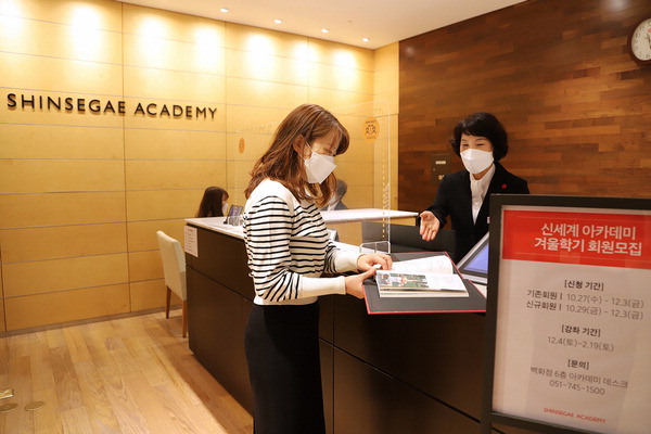 | ½Å¼¼°è ¼¾ÅÒ½ÃÆ¼Á¡ 6Ãþ ¡®½Å¼¼°è ¾ÆÄ«µ¥¹Ì¡¯ Á÷¿øÀÌ °í°´¿¡°Ô °Ü¿ïÇб⠼ö° ½ÅûÀ» ¾È³»Çϰí ÀÖ´Ù. ½Å¼¼°è ¼¾ÅÒ½ÃÆ¼ Á¦°ø |