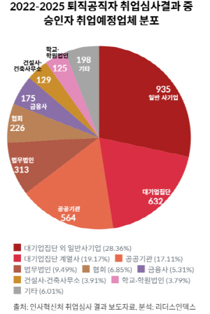 ÃÖ±Ù 4³â°£ ÅðÁ÷°øÁ÷ÀÚµéÀÇ Àý¹Ý °¡±îÀ̰¡ »ç±â¾÷ü·Î °£ °¡¿îµ¥ ÁÖ¿ä ±×·ì Áß À̵éÀÌ °¡Àå ¸¹ÀÌ À̵¿ÇÑ °÷Àº ÇÑÈ­·Î ³ªÅ¸³µ´Ù. Á¤ºÎ±â°üº°·Î´Â ±¹¹æºÎ ÅðÁ÷ÀÚ°¡ ÃÖ´Ù¿´°í °æÂûû, °ËÂûû, ±ÝÀ¶°¨µ¶¿ø, ±¹¼¼Ã» µî »çÁ¤±â°ü Ãâ½Åµéµµ µÎµå·¯Á³´Ù.