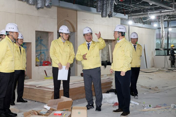 19ÀÏ ¿ÀÀü À±È£Áß Çà¾ÈºÎ Àå°üÀº ºÎ»ê µ¿±¸ ¼öÁ¤µ¿¿¡ ÀÖ´Â ÇØ¼öºÎ Àӽà û»ç¸¦ ã¾Æ ÀÌÀü Áغñ »óȲÀ» »ìÆñ´Ù, ±×´Â ÇØ¼öºÎ ÀÌÀüÃßÁø´ÜÀ¸·ÎºÎÅÍ ÇöȲÀ» º¸°í ¹ÞÀº µÚ »ç¹«°ø°£, ±¸³»½Ä´ç, ¾î¸°ÀÌÁý µî °¢ ÃþÀÇ °ø»ç ÇöÀåÀ» Á÷Á¢ È®ÀÎÇß´Ù. ÀÌ¾î °ü°èÀÚµéÀ» °Ý·ÁÇß´Ù. À± Àå°üÀº Áß¾Ó°ú Áö¹æÁ¤ºÎÀÇ Çù·ÂÀ» ÅëÇØ ÀÌÀüÀÌ Â÷Áú ¾øÀÌ ÁøÇàµÇ°Ô ÇÏ°Ú´Ù°í ¾ð±ÞÇÑ µÚ ÁöÀÚü¿¡´Â ÇØ¼öºÎ Á÷¿øÀÇ ¿øÈ°ÇÑ Á¤Âø°ú Á¤ÁÖ ¿©°Ç ¸¶·ÃÀ» Áö¿øÇØ ´Þ¶ó°í ´çºÎÇß´Ù.