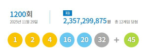 Á¦1200ȸ ·Î¶Çº¹±Ç Ãß÷¿¡¼­ ¡®1, 2, 4, 16, 20, 32¡¯°¡ 1µî ´ç÷¹øÈ£·Î »ÌÇû´Ù°í 29ÀÏ ¹àÇû´Ù. 2µî º¸³Ê½º ¹øÈ£´Â ¡®45¡¯ÀÌ´Ù.