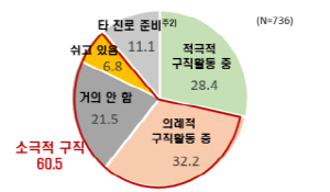 Ãë¾÷À» ÇØ¾ß ÇÒ ´ëÇб³ 4Çг⠻ý ¶Ç´Â Á¹¾÷»ý 10¸í °¡¿îµ¥ 6¸í°¡·®Àº ¼Ò±ØÀûÀ¸·Î ±¸Á÷ Àü¼±¿¡ ³ª¼± °ÍÀ¸·Î ³ªÅ¸³µ´Ù. ¼Ò±ØÀûÀ¸·Î ±¸Á÷ÇÑ´Ù´Â °ÍÀº ½ÇÁúÀûÀ¸·Î Ãë¾÷ Áغñ¸¦ Çϰųª °èȹÀ» ¼¼¿ìÁö ¾Ê°í °æÇè »ï¾Æ Áö¿øÇϰųª ±¸Á÷Ȱµ¿À» °ÅÀÇ ÇÏÁö ¾Ê´Â ±¸Á÷ Áß´Ü »óŸ¦ ÀǹÌÇÑ´Ù.