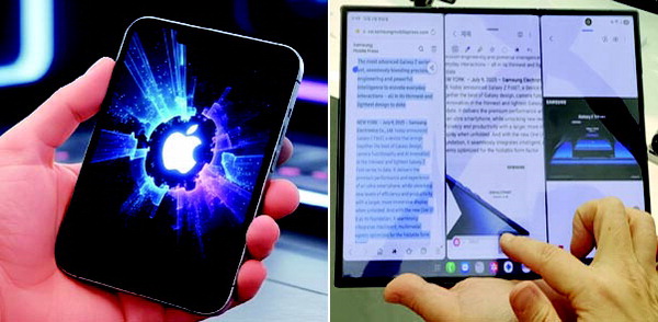 Æú´õºíÆùÀº µÎ²²°¡ ¸Å¿ì Áß¿äÇÏ´Ù. µÎ²²°¡ ¾ãÀ¸¸é ¹«°Ôµµ ÁÙ¾îµé°í »ç¿ëÀÚ°¡ Áã¾úÀ» ¶§ ÆíÀǼºÀÌ ´Þ¶óÁö±â ¶§¹®ÀÌ´Ù. ¾ÖÇà Æú´õºíÆùÀº Á¢¾úÀ» ¶§ ¾à 9~9.5mm, ÆîÃÆÀ» ¶§ 4.5~4.8mm µÎ²²·Î ¿¹»óµÈ´Ù. ³»ºÎ¿¡´Â 7.8ÀÎÄ¡ ´ëÇü Æú´õºí µð½ºÇ÷¹À̰¡ žÀçµÇ¸ç ¿ÜºÎ Ä¿¹ö µð½ºÇ÷¹ÀÌ´Â ¾à 5.5ÀÎÄ¡·Î, ¾ÆÀÌÆù 13 ¹Ì´Ï¿Í ºñ½ÁÇÑ Å©±â°¡ µÉ °ÍÀ¸·Î º¸ÀδÙ. ¾÷°è¿¡¼´Â µÎ È¸é ¸ðµÎ ±âÁ¸ Æú´õºíÆùº¸´Ù ³Ð°í ªÀº ºñÀ²À» °¡Áú °¡´É¼ºÀÌ Å©´Ù°í º»´Ù. ¡®Æú´õºí ¾ÆÀÌÆù¡¯Àº ÆîÃÆÀ» ¶§ ¾ÆÀÌÆÐµå(¾ÖÇà ÅÂºí¸´ PC)¿Í ºñ½ÁÇÑ °æÇèÀ» ÁÙ °ÍÀ¸·Î ¿¹»óµÈ´Ù.