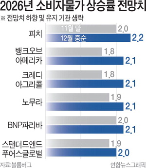 ´ëÇ¥ÀûÀ¸·Î ¹ðÅ©¿Àºê¾Æ¸Þ¸®Ä«¿Í Å©·¹µð ¾Æ±×¸®ÄÝÀº ³»³â ¼ÒºñÀÚ¹°°¡ »ó½Â·ü Àü¸ÁÄ¡¸¦ °¢°¢ 1.8%¿¡¼­ 2.1%·Î 0.3%Æ÷ÀÎÆ® ³ô¿´´Ù. ³ë¹«¶ó´Â 1.9%¿¡¼­ 2.1%·Î, BNPÆÄ¸®¹Ù´Â 2.0%¿¡¼­ 2.1%·Î, JP¸ð°ÇüÀ̽º´Â 1.3%¿¡¼­ 1.7%·Î °¢°¢ Àü¸ÁÄ¡¸¦ Á¶Á¤Çß´Ù. ¶Ç ½ºÅÄ´õµå¾ØµåǪ¾î½º ±Û·Î¹úÀº 1.9%¿¡¼­ 2.0%·Î, ÇÇÄ¡´Â 2.0%¿¡¼­ 2.2%·Î º¯°æÇß´Ù.
