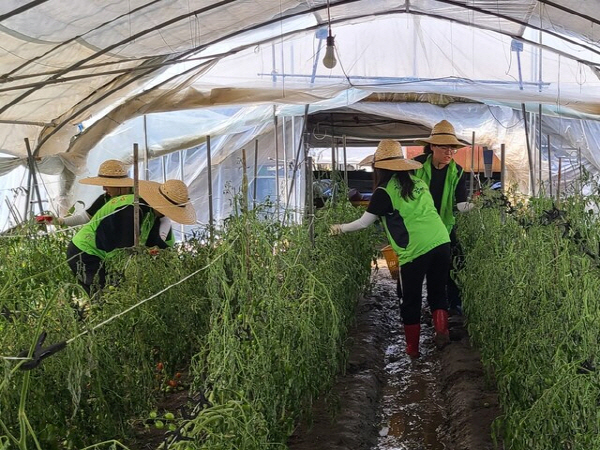 | ³ó°¡¿¡¼ ÀϼÕÀ» µ½°í ÀÖ´Â ³ó¸²Ãà»ê½ÄǰºÎ û³â ÀÎÅϵé. ³ó½ÄǰºÎ Á¦°ø