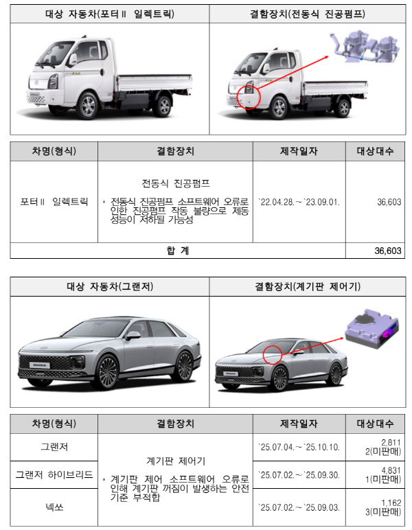 11ÀÏ ±¹Åä±³ÅëºÎ´Â Çö´ëÀÚµ¿Â÷¢ß, ±â¾Æ¢ß, BMWÄÚ¸®¾Æ¢ß¿¡¼ Á¦ÀÛ¡¤¼öÀÔ¡¤ÆÇ¸ÅÇÑ 51°³ Â÷Á¾ 17¸¸9880´ë¿¡¼ °¢Á¾ ÀÌ»óÀÌ µå·¯³µ´Ù°í ¹àÇû´Ù. Çö´ëÀÚµ¿Â÷ÀÇ Æ÷ÅÍ¥± ÀÏ·ºÆ®¸¯ 3¸¸6603´ë¿Í ±â¾ÆÀÇ ºÀ°í¥² EV 2¸¸5078´ë¿¡¼´Â Àüµ¿½Ä Áø°øÆßÇÁ ºÎǰ ¿À·ù·Î ÀÛµ¿ÀÌ ºÒ·®ÇØÁ® Á¦µ¿ ¼º´ÉÀÌ ÀúÇ쵃 °¡´É¼ºÀÌ ÁöÀûµÆ´Ù. Çö´ëÀÚµ¿Â÷ÀÇ ±×·£Àú µî 20°³ Â÷Á¾ 3¸¸9148´ë¿Í ±â¾ÆÀÇ K8 µî 16°³ Â÷Á¾ 6¸¸9137´ë¿¡¼´Â °è±âÆÇ Á¦¾î ºÎǰ ÀÌ»ó ¶§¹®¿¡ °è±âÆÇ ²¨ÁüÀÌ ¹ß»ýÇß´Ù. ÀÌ´Â ¾ÈÀü±âÁØ ºÎÀûÇÕ »çÇ׿¡ ÇØ´çÇÑ´Ù.