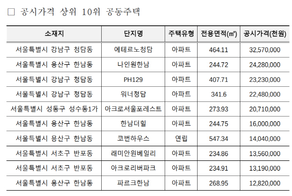 Á¤ºÎ°¡ ¿ÃÇØ Àü±¹ÀÇ °øµ¿ÁÖÅÃ(¾ÆÆÄÆ®¡¤¿¬¸³ÁÖÅᤴټ¼´ëÁÖÅÃ) °ø½Ã°¡°Ý(¾È)¿¡ ´ëÇÑ ¼ÒÀ¯ÀÚ ¿­¶÷ ¹× ÀÇ°ß Ã»Ãë ÀÏÁ¤À» Á¦½ÃÇÑ °¡¿îµ¥ ºÎ»ê¿¡¼­´Â ÇØ¿î´ë±¸ Áßµ¿ ¿¤½ÃƼ(Àü¿ë¸éÀû 244.62§³)°¡ 71¾ï100¸¸ ¿øÀ¸·Î °¡Àå ºñ½Ñ °ÍÀ¸·Î ³ªÅ¸³µ´Ù.