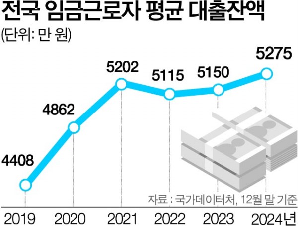 ¿ì¸®³ª¶ó ÀӱݱٷÎÀÚÀÇ Æò±Õ ´ëÃâÀܾ×(ÀºÇà±Ç+ºñÀºÇà±Ç)ÀÌ 2024³â ¸» ±âÁØ 5275¸¸ ¿ø¿¡ ´ÞÇϸç 2³â ¿¬¼Ó Áõ°¡¼¼¸¦ À̾´Ù.