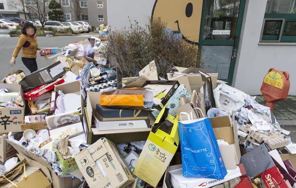 ÀÌ ¾ÆÆÄÆ®´Â Æò¼Ò ¸ÅÁÖ ¸ñ¿äÀÏ ¿ÀÀü ÀçȰ¿ë ¾²·¹±â ºÐ¸®¼ö°Å¸¦ ½ÃÇàÇϰí ÀÖ´Ù. ¾²·¹±â ¼ö°Å ¾÷üµµ ¿¬ÈÞÀÎ Áö³ÁÖ´Â °Ç³Ê¶Ù°í À̹ø ÁÖ¿¡´Â ÇÏ·ç ¾Õ´ç±ä ¼ö¿äÀÏ ºÐ¸®¼ö°Å¸¦ ½ÃÇàÇϱâ·Î Çß´Ù. ÇÏÁö¸¸ ÀϺΠÁÖ¹ÎÀÌ ¼³ ´ÙÀ½ ³¯ÀÎ 20ÀϺÎÅÍ ÀçȰ¿ë ¾²·¹±â¸¦ ¹ö¸®±â ½ÃÀÛÇÏ¸é¼ ¾²·¹±â°¡ Á¡Á¡ ½×À̱⠽ÃÀÛÇß´Ù.