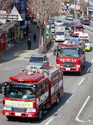 | ºÎ»ê ºÏºÎ¼Ò¹æ¼°¡ °ñµçŸÀÓ È®º¸¸¦ À§ÇÑ ¼Ò¹æÂ÷ ±æ ÅÍÁÖ±â ÈÆ·ÃÀ» Çϰí ÀÖ´Ù. ±¹Á¦½Å¹®DB |