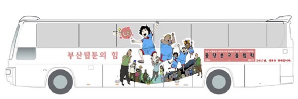 B À¥Å÷ ·¡ÇÎ ¹ö½º´Â 31ÀνÂ, 45Àν ¹ö½º 2´ë·Î, ½ÃÁ¤ ÇöÀå Åõ¾î¿Í Á÷¿ø Åë±Ù¿¡ »ç¿ëµÅ ºÎ»ê Àü Áö¿ªÀ» ¼øÈ¸ÇÑ´Ù. 42Àν ¹ö½º¿¡´Â ÇöÀç ¿µÈ Á¦ÀÛÀÌ °áÁ¤µÈ ÀÛǰ 4ÆíÀÇ ÀÏ·¯½ºÆ®°¡ ¹ö½º ÁöºØ°ú µÞ¸é, ¿ÞÂÊ¡¤¿À¸¥ÂÊ ¸é¿¡ ³ª´² ÀÔÇôÁø´Ù. ±èÅÂÇå ÀÛ°¡ÀÇ 'DEEP(µö)', ³²Á¤ÈÆ ÀÛ°¡ÀÇ 'I(¾ÆÀÌ)', ¿À¿µ¼® ÀÛ°¡°¡ ½ºÅ丮¸¦ ¾´ 'µ¶°í', ¹è¹Î±â ÀÛ°¡°¡ ±×¸®°í ¿À¿µ¼® ÀÛ°¡°¡ ¾´ '¸ù´çºÐ±³ ¿Ã¸²ÇÈ'ÀÌ´Ù. 32Àν ¹ö½º´Â ³×À̹ö¿¡ Àα⸮ ¿¬Àç ÁßÀÎ °¹Î±¸ ÀÛ°¡ÀÇ 'Àª À¯ ¸Þ¸® ¹Ì(Will you marry me?)'·Î ·¡ÇÎ µÈ´Ù.