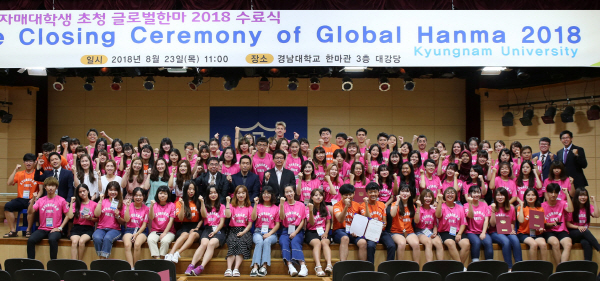 | 23ÀÏ °æ³²´ëÇб³ ÇѸ¶°ü ´ë°´ç¿¡¼ ÇØ¿Ü ÀڸŴëÇлý ÃÊû Çѱ¹ÇÐ ¿¬¼ö ÇÁ·Î±×·¥ÀÎ ¡®2018 ±Û·Î¹ú ÇѸ¶¡¯¿¡ Âü¿©ÇÑ ÇлýµéÀÌ ¼ö·á½ÄÀ» °®°í ±â³äÃÔ¿µÀ» Çß´Ù. °æ³²´ëÇб³ Á¦°ø