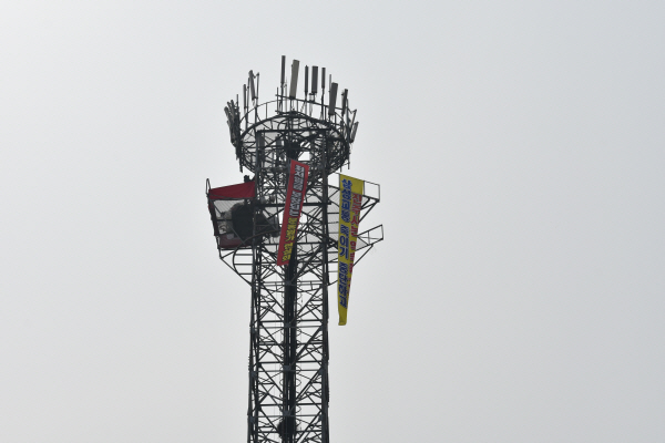 »ï¼º±³Åë ³ëÁ¶ ±è¿µ½Ä(51)¡¤¹®Á¤½Ä(48) ¾¾ µî Á¶ÇÕ¿ø 2¸íÀº À̳¯ ¿ÀÀü 6½Ã 10ºÐ²² ³²Çذí¼Óµµ·Î ÁøÁÖ³ªµé¸ñ Àα٠Çѱ¹ÀüÆÄ±âÁö±¹¢ß ¼ÒÀ¯ÀÇ 45m ³ôÀÌÀÇ À̵¿Åë½ÅÁß°è±â öž¿¡ ¿Ã¶ó°¡ ³ó¼ºÀ» ¹úÀ̰í ÀÖ´Ù.