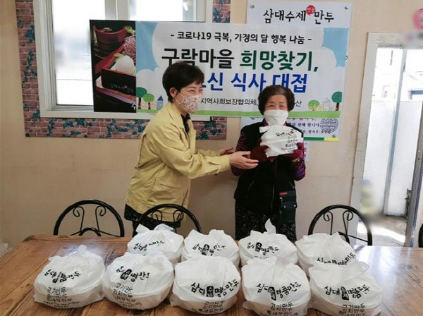 ¼ö¿µ±¸ ¸Á¹Ì2µ¿ Áö¿ª»çȸº¸ÀåÇùÀÇü¿¡¼´Â 2020. 5. 12.(È) ±¸¶ô¸¶À» Èñ¸Áã±â »ç¾÷ÀÇ ÀÏȯÀ¸·Î ÇູÇѺε¿»ê(´ëÇ¥ ±è¼ö¿¬)¿¡¼ Äڷγª19 ±Øº¹À» À§ÇØ Àú¼Òµæ Ȧ·Î¾î¸£½Å 15¸í¿¡°Ô ¶±¸¸µÔ±¹ 2Àκо¿À» Æ÷Àå Àü´ÞÇÏ¿´´Ù.