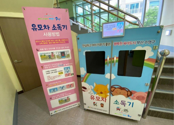 ¼ö¿µ±¸(±¸Ã»Àå °¼ºÅÂ)´Â ¿µÀ¯¾ÆÀÇ °¨¿°º´ ¿¹¹æ ¹× ¼¼Å¹ÀÇ ÆíÀǼº Á¦°øÀ» À§ÇØ À°¾ÆÁ¾ÇÕÁö¿ø¼¾ÅÍ¿¡¡®À¯¸ðÂ÷ ¼Òµ¶±â¡¯¸¦ 5¿ù 8ÀÏ ¼³Ä¡Çß´Ù°í ¹àÇû´Ù.