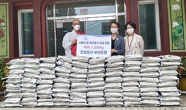 ¼ö¿µ±¸ ¾È½ÉÁ¤»ç ÀÌ¿ôµ½±â ¼ºÇ° ±âʼö¿µ±¸(±¸Ã»Àå °¼ºÅÂ)´Â 2020. 9. 23.(¼ö) ÇØ¿î´ë ¼ÒÀç ¾È½ÉÁ¤»ç¿¡¼ Ãß¼®À» ¸Â¾Æ ¾î·Á¿î ȯ°æ¿¡ Ã³ÇØ ÀÖ´Â ¼ö¿µ±¸¹ÎÀ» ´ë»óÀ¸·Î Àü´ÞÇÒ ÀÌ¿ôµ½±â ¼ºÇ° ¹é¹Ì 100Æ÷¸¦ ¾È½ÉÁ¤»ç ºÎ»êµµ·®(ȸÁÖ ¹ý¾È½º´Ô)À¸·Î ºÎÅÍ ±âŹ ¹Þ¾Ò´Ù.