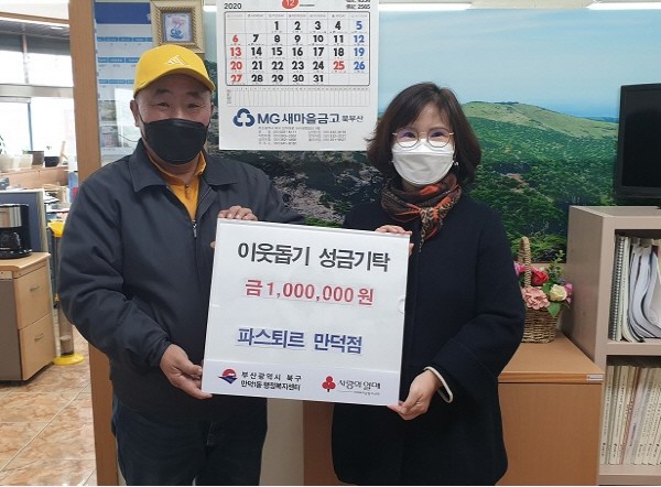¸¸´ö1µ¿ ÇàÁ¤º¹Áö¼¾ÅÍ(µ¿Àå ±èÈñÀÚ)´Â Áö³ 12¿ù 7ÀÏ ÆÄ½ºÅ𸣠¸¸´öÁ¡(´ëÇ¥ ¹Ú¶ôÈ£)ÀÌ Ãë¾à°èÃþÀ» µ½±â À§ÇÑ ¼º±Ý 100¸¸ ¿øÀ» ±âŹÇß´Ù°í ¹àÇû´Ù. ¼º±ÝÀº ºÎ»ê »çȸº¹Áö°øµ¿¸ð±Ýȸ·Î ÁöÁ¤±âŹ µÅ ÇâÈÄ ¾î·Á¿î ÀÌ¿ôÀ» À§ÇØ »ç¿ëµÉ ¿¹Á¤ÀÌ´Ù.