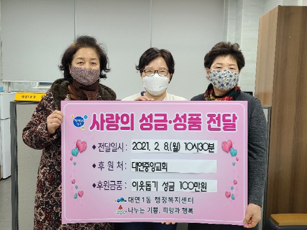 ¸Å³â ÀÌ¿ôµ½±â¼º±Ý(ǰ)À» ±âÅ¹ÇØ ¿Â ´ë¿¬Áß¾Ó±³È¸´Â À̹ø ¼³ ¸íÀý¿¡µµ ¼Ò¿Ü°èÃþÀ» À§ÇÑ ³ª´® ½Çõ¿¡ µ¿ÂüÇß´Ù.