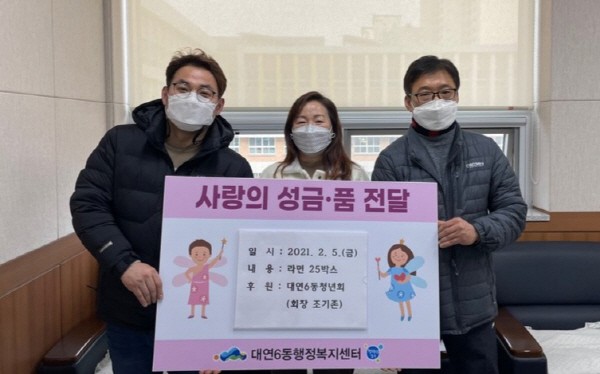 ´ë¿¬6µ¿ û³âȸ¡®ÀÌ¿ôµ½±â ¼ºÇ°¡¯±âºÎºÎ»ê ³²±¸ ´ë¿¬6µ¿ û³âȸ(ȸÀå Á¶±âÁ¸)´Â ´Ù°¡¿À´Â ¼³ ¸íÀýÀ» ¸ÂÀÌÇÏ¿© ´ë¿¬6µ¿ÇàÁ¤º¹Áö¼¾ÅÍ(µ¿Àå ±è°æÇý)¿¡ ¶ó¸é 25¹Ú½º¸¦ °ü³» Ãë¾à°èÃþÀ» À§ÇØ ±âºÎÇß´Ù.