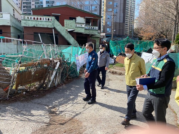 À̳¯ Á¡°ËÀº °ø»ç Áß´ÜÀ¸·Î Àå±â°£ ¹æÄ¡µÇ¾î¿Â °ÅÁ¦2µ¿ 1045-5¹øÁö ÇöȲÀ» Á¶»çÇÏ°í ¾ÈÀüÁ¡°ËȰµ¿À» Áß½ÉÀ¸·Î ÁøÇàµÆ´Ù.