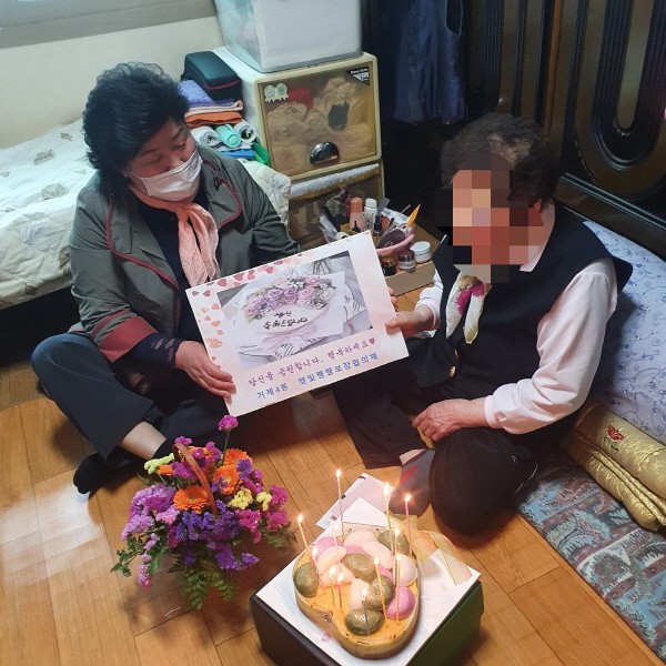 °ÅÁ¦4µ¿, ÇÞºû¸¸º¸ÀåÇùÀÇü Ȧ·Î ¾î¸£½Å »ýÀÏ ÃàÇÏ ¼ºñ½º¿¬Á¦±¸ °ÅÁ¦4µ¿(µ¿Àå °°æ¾Æ)Àº ÇÞºû¸¸º¸ÀåÇùÀÇü(¹Î°£À§¿øÀå ¿ÀÇö¿Á) ÁÖ°üÀ¸·Î »ý½ÅÀ» ¸ÂÀÌÇÏ´Â Àú¼Òµæ Ȧ·Î ¾î¸£½Å 2¼¼´ë¿¡ Àå¼ö¿Í °Ç°À» ±â¿øÇÏ´Â ¡®»ç¶ûÀ» ´ãÀº ¶± ÄÉÀÌÅ©¡¤²É´Ù¹ß¡¤¿Â´©¸®»óǰ±Ç¡¤ÃàÇÏÆíÁö¡¯¸¦ Àü´ÞÇß´Ù.