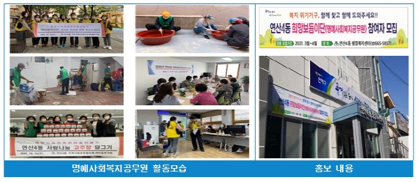 ¿¬»ê4µ¿, ¸í¿¹»çȸº¹Áö°ø¹«¿øÀÎ ¡®Èñ¸Áº¸µëÀÌ´Ü¡¯ ¸ðÁý- ÃÎÃÎÇÑ Áö¿ª»çȸ ¾ÈÀü¸Á ±¸ÃàÀ¸·Î µû¶æÇÑ º¹Áö°øµ¿Ã¼ Á¶¼º ¸ñÇ¥