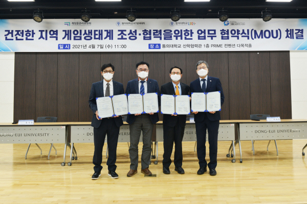 µ¿ÀÇ´ë(ÃÑÀå ÇѼöȯ) ICT°ø°ú´ëÇÐ(ÇÐÀå ±èÄ¡¿ë)°ú LINC+»ç¾÷´Ü(´ÜÀå ÀÌÀÓ°Ç), ÀΰøÁö´É±×·£µåICT¿¬±¸¼¾ÅÍ(¼¾ÅÍÀå Á¤¼®Âù)´Â Áö³ 4¿ù 7ÀÏ ¿ÀÀü 11½Ã, µ¿ÀÇ´ë »êÇÐÇù·Â°ü 1Ãþ PRIME ÄÁº¥¼Ç ´Ù¸ñÀûȦ¿¡¼ °ÔÀÓ¹°°ü¸®À§¿øÈ¸(À§¿øÀå ÀÌÀçÈ«)¿Í °ÇÀüÇÑ Áö¿ª °ÔÀÓ»ýŰè Á¶¼º°ú Çù·ÂÀ» À§ÇÑ MOU¸¦ ü°áÇß´Ù.
