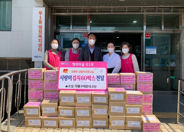 ¿ì1µ¿ ¿øºÒ±³ ÇØ¿î´ë±³´ç, »ç¶ûÀÇ ±èÄ¡ 60¹Ú½º Àü´Þ¿ì1µ¿ ¿øºÒ±³ ÇØ¿î´ë±³´ç(±³¹« ±è°æÀº)Àº 8ÀÏ ¿øºÒ±³¿¸°³¯¡®´ë°¢°³±³Àý¡¯À» ¸ÂÀÌÇÏ¿© ±³µµµéÀÌ ¼Õ¼ö ´ã±Ù ±èÄ¡ 60¹Ú½º¸¦ ¿ì1µ¿ ÇàÁ¤º¹Áö¼¾ÅÍ(µ¿Àå °¾ç¿ø)¿¡ Àü´ÞÇß´Ù.
