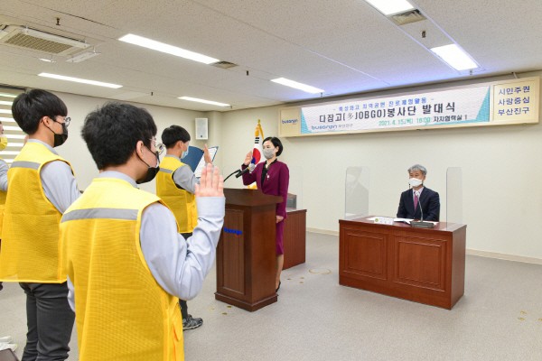 ºÎ»êÁø±¸(±¸Ã»Àå ¼Àº¼÷)´Â 15ÀÏ ±¸Ã» ÀÚÄ¡Çù·Â½Ç¿¡¼ µ¿Àǰø¾÷°íµîÇб³(Çб³Àå À̵¿Á÷) Çлý ¹× °ü°èÀÚ µîÀÌ Âü¼®ÇÑ °¡¿îµ¥ Ư¼ºÈ°í Áö¿ª°øÇå Áø·ÎüÇèȰµ¿À» À§ÇÑ ¡®´ÙÀâ°í(ÒýJOBGO) ºÀ»ç´Ü¡¯ ¹ß´ë½ÄÀ» °³ÃÖÇß´Ù.