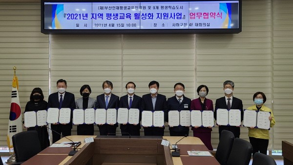 ºÎ»êÁø±¸, ¡®Áö¿ª Æò»ý±³À° Ȱ¼ºÈ Áö¿ø»ç¾÷¡¯ ÃßÁø ¾÷¹« Çù¾à ü°áºÎ»ê ºÎ»êÁø±¸(±¸Ã»Àå ¼Àº¼÷)´Â 15ÀÏ ¡®2021³âµµ Áö¿ª Æò»ý±³À° Ȱ¼ºÈ Áö¿ø»ç¾÷¡¯ÀÇ È¿À²ÀûÀÎ Çù·Â ¹× °øµ¿»ç¾÷ ÃßÁøÀ» À§ÇØ ºÎ»êÀÎÀçÆò»ý±³À°ÁøÈï¿ø°ú ºÎ»ê½Ã 9°³±¸°¡ °øµ¿À¸·Î ¾÷¹«Çù¾à(MOU)À» ü°áÇß´Ù°í ¹àÇû´Ù.