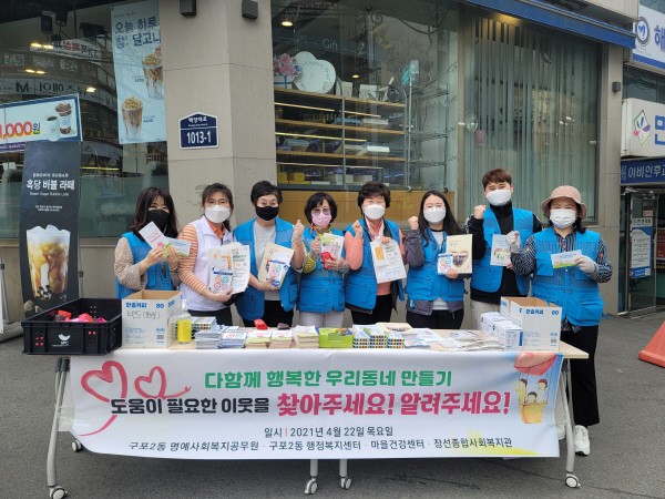 ±¸Æ÷2µ¿, º¹Áö»ç°¢Áö´ë ¹ß±¼À§ÇÑ È«º¸ Ä·ÆäÀÎ ÆîÃÄºÎ»ê ºÏ±¸ ±¸Æ÷2µ¿ ÇàÁ¤º¹Áö¼¾ÅÍ(µ¿Àå Á¤ÀÌÇö)´Â ½ÇÁ÷ ¹× Æó¾÷ µîÀ¸·Î »ý°è¿¡ ¾î·Á¿òÀ» °Þ°í ÀÖ´Â º¹Áö»ç°¢Áö´ë À§±â°¡±¸¸¦ ¹ß±¼Çϱâ À§ÇØ °Å¸® È«º¸ Ä·ÆäÀÎÀ» Àü°³Çß´Ù°í 26ÀÏ ¹àÇû´Ù.