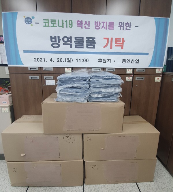 ¿¬»ê1µ¿, µ¿Àλê¾÷ Äڷγª19 È®»ê ¹æÁö ¹æ¿ª¹°Ç° ±âŹ¿¬Á¦±¸ ¿¬»ê1µ¿(µ¿Àå ¹Ú¼ø¹Ì)Àº Áö³ 26ÀÏ µ¿Àλê¾÷(´ëÇ¥ ±èÇüµµ)·ÎºÎÅÍ Äڷγª19 ¹æ¿ªÀ» À§ÇÑ ÀÌÁöÅØ½º ºÎÁ÷Æ÷ 5¹Ú½º µî 100¸¸ ¿ø »ó´çÀÇ ¹æ¿ª¹°Ç°À» ±âŹ¹Þ¾Ò´Ù.