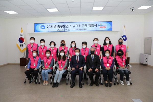 ºÎ»ê Áß±¸ 2021³â Áß±¸ ±Ý¿¬Áöµµ¿ø À§Ã˺λê Áß±¸(±¸Ã»Àå ÃÖÁøºÀ)´Â Áö³ 10ÀÏ ´ã¹è¿¬±â ¾ø´Â °Ç°µµ½Ã Áß±¸¸¦ ¸¸µé±â À§ÇØ ½Å±Ô ±Ý¿¬Áöµµ¿øÀ» À§ÃËÇß´Ù. ÃÑ 14¸íÀÇ ±Ý¿¬Áöµµ¿ø¿¡°Ô ±Ý¿¬Áöµµ¿ø À§ÃËÀå°ú ±Ý¿¬Áöµµ¿øÁõÀ» ¼ö¿©Çϰí Á÷¹«±³À°µµ ÇÔ²² ½Ç½ÃÇß´Ù.