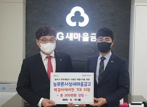 MG»õ¸¶À»±Ý°í Áö¿ª»ó»ýÀÇ ³¯ ¸Â¾Æ ±¥¹ýµ¿¿¡ ¿¡¾îÄÁ Áö¿ø´ÃǪ¸¥»ç»ó »õ¸¶À»±Ý°í(ÀÌ»çÀå ±è¼º¶ô)¿¡¼´Â ¿À´Â 25ÀÏ¡¸Á¦1ȸ MG»õ¸¶À»±Ý°í Áö¿ª»ó»ýÀÇ ³¯¡¹À» ¸Â¾Æ ±¥¹ýµ¿Áö¿ª»çȸº¸ÀåÇùÀÇü(°øµ¿À§¿øÀå Àü±Ý¼ø, °ûÀα¸)¿¡ ¾î¸£½Å µ¹º½ ¹°Ç°(¿¡¾îÄÁ) »ç¾÷ºñ 200¸¸ ¿øÀ» Áö¿øÇÏ¿´´Ù.