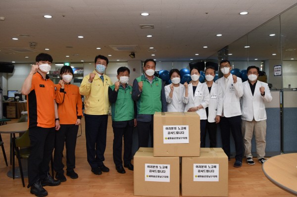 »õ¸¶À»¿îµ¿ ³²±¸Áöȸ Äڷγª19 ¿¹¹æÁ¢Á¾¼¾ÅÍ ±Ù¹«ÀÚ °Ý·Á»õ¸¶À»¿îµ¿ ³²±¸Áöȸ(ȸÀå:±èÅÂÀ¯)´Â 5¿ù 20ÀÏ(¸ñ) ³²±¸±¹¹ÎüÀ°¼¾ÅÍ ³»¿¹¹æÁ¢Á¾¼¾Å͸¦ ¹æ¹®ÇÏ¿© ±Ù¹«ÀÚ 150¿©¸í¿¡°Ô ÄíŰ¼¼Æ®¸¦ Àü´ÞÇß´Ù.