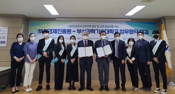 ºÎ»ê°úÇбâ¼ú´ëÇб³(ÃÑÀå °±â¼º)´Â 20ÀÏ ºÎ»ê°æÁ¦ÁøÈï¿ø(¿øÀå ¹Ú±â½Ä)°ú ¡¸ÀÇ·á°ü±¤ºÐ¾ß Àü¹®Àη ¾ç¼º ¹× ±³·ù Ȱ¼ºÈ ÃßÁøÀ» À§ÇÑ ¾÷¹«Çù¾à¡¹À» ü°áÇß´Ù.