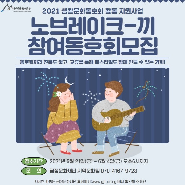 ¸ðÁý ´ë»óÀº ±ÝÁ¤±¸¿¡¼ Ȱµ¿Çϰí Àְųª, ±ÝÁ¤±¸¿¡ ¼ÒÀçÁö¸¦ µÎ°í ÀÖ´Â »ýȰ¹®Èµ¿È£È¸ÀÌ¸ç ±ÝÁ¤¹®ÈÀç´Ü ´©¸®Áý(www.gjfac.org)¿¡¼ ½Åû ¾ç½ÄÀ» ³»·Á¹Þ¾Æ ÀüÀÚ¿ìÆí Á¢¼öÇÏ¸é µÈ´Ù.