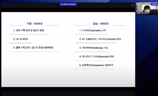 Ư°Àº À§°íÄÄÆÛ´Ï °³¹ßÆÀÀÇ ÇÑ»óÀÍ ¿¬±¸¿øÀÌ ¸Ã¾Æ ¡®¹°·ù ÀÌ·Â °ü¸® ¹× ¿ø»êÁö Áõ¸í¡¯À» ÁÖÁ¦·Î À̷аú ½Ç½À±³À°À» ½Ç½ÃÇß´Ù. °¿¬Àº ¿ø°Ý°ÀÇ ¼Ö·ç¼ÇÀÎ ¿¡¾î¹Ô(Airmeet)À» Ȱ¿ëÇØ 120ºÐ°£ ÁøÇàµÆ°í, ºí·Ï¿¡ »ç¹°ÀÎÅͳÝ(IoT) µ¥ÀÌÅ͸¦ ÀúÀåÇÏ´Â ¹æ¹ýÀ» Çлýµé¿¡°Ô Àü´ÞÇß´Ù.